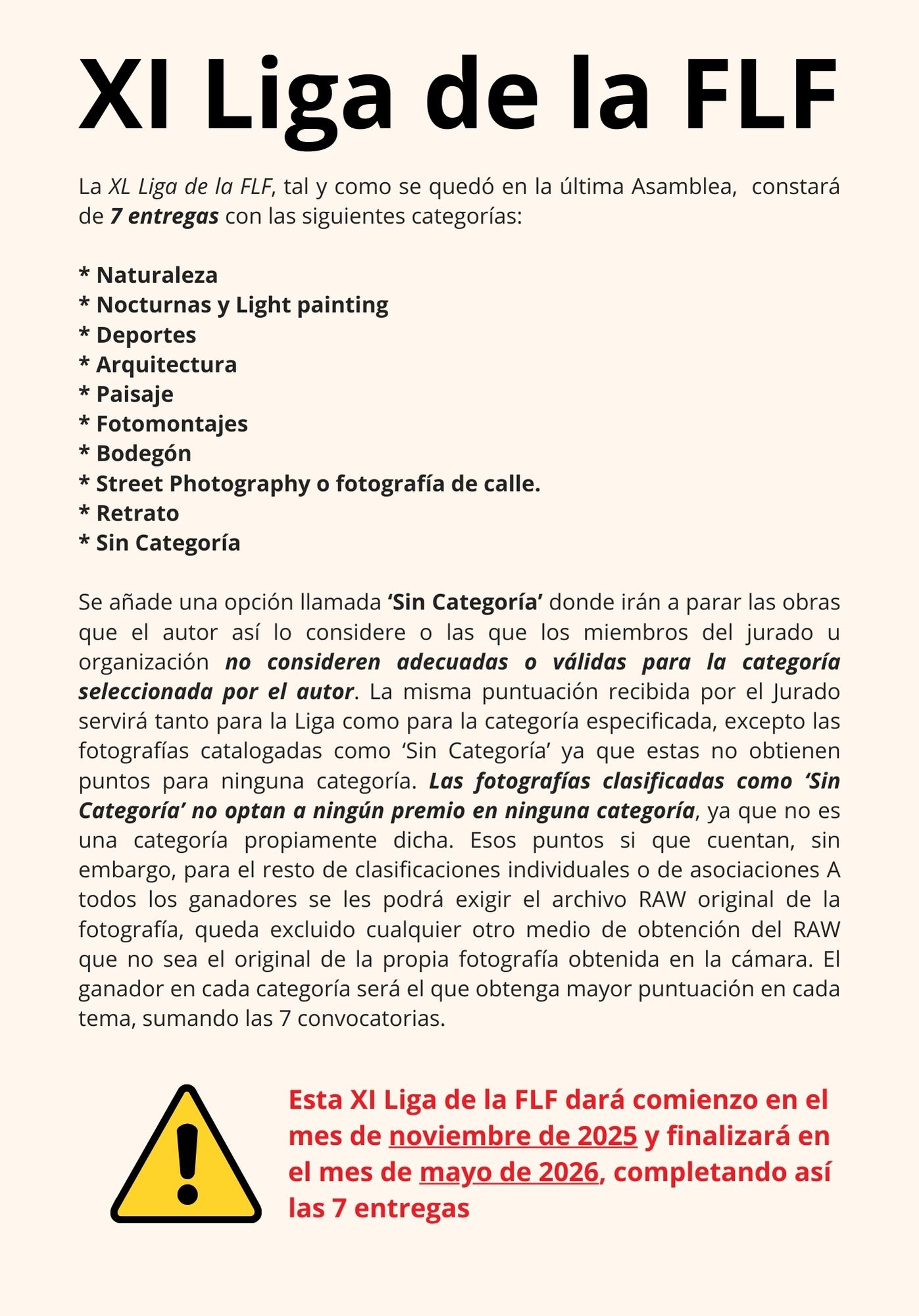 Noticia sobre el inicio de la Xl Liga de la FLF
